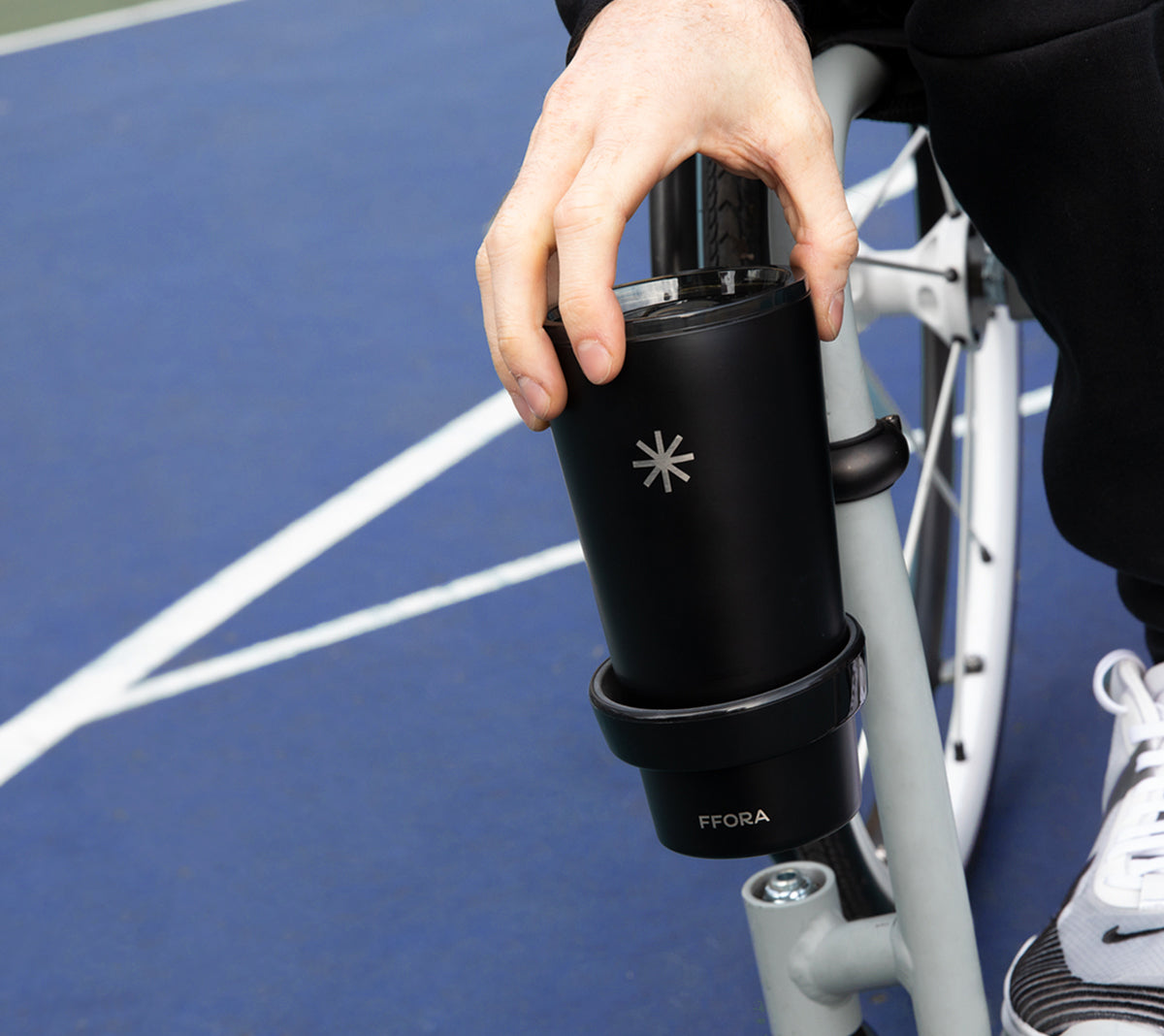 At the heart of the FFORA product range is the FFORA Attachment – a clamp and open dock that attaches securely around the lower tubes of most manual wheelchairs.