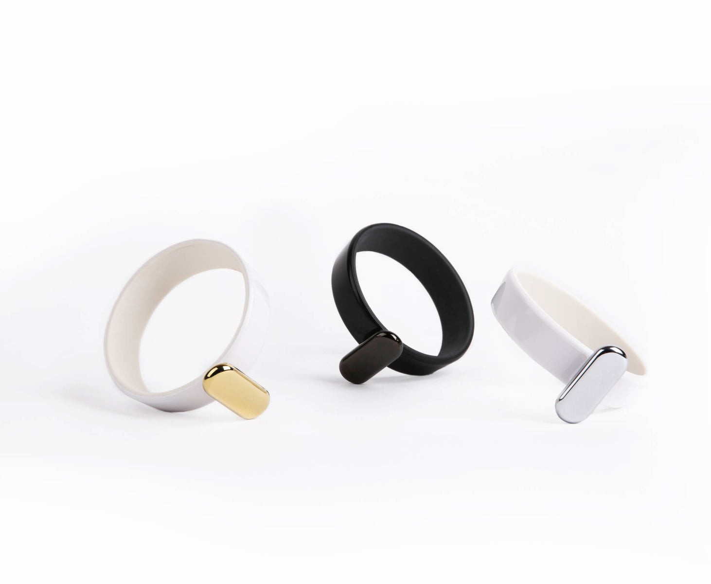 All FFORA accessories are designed with a "pebble" metal fixture that effortlessly slides into the dock and holds in place.
